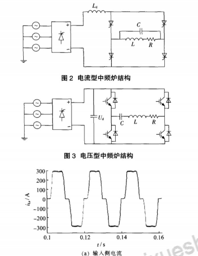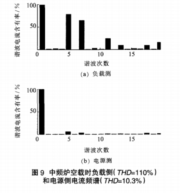 晶閘管中頻電源的應(yīng)用是從1996年瑞士BBC公司研制成功第一臺感應(yīng)熔煉電源開始的.并得到了廣泛應(yīng)用.遍及熔煉、透熱、種子處理、環(huán)保等多個領(lǐng)域…國內(nèi)晶閘管中頻電源已發(fā)展成為電力系統(tǒng)中最重要的非線性負荷由于中頻電源裝置在實現(xiàn)功率控制和處理的同時.會不可避免地產(chǎn)生非正弦波形,向電力系統(tǒng)注入諧波電流.使公共聯(lián)結(jié)點(PPC)的電壓波形嚴重畸變.使電網(wǎng)電能質(zhì)量嚴重下降.電能損耗顯著上升.被公認為電力系統(tǒng)的一大公害。諧波治理工作尤為重要E2]為減少中頻爐帶來的諧波污染,國內(nèi)已采用多脈動整流技術(shù)研制出了多種中頻爐設(shè)備,包括6脈,l2脈,24脈中頻爐等,由于后兩者成本相對較高.因此大多煉鋼企業(yè)仍舊采用6脈動中頻爐進行金屬熔煉.其諧波污染問題仍不能忽視現(xiàn)階段對于中頻爐諧波的治理方法主要有2種方法:一種是補救性的治理方法.即為克服既存諧波問題所采用的方法:一種是避免中頻爐諧波出現(xiàn)的預(yù)防性的措施[3]。雖然第二種方法可以從根本上解決日益嚴重的諧波污染.但對于現(xiàn)已大量使用的中頻爐.則只有采用第一種方法補償其產(chǎn)生的諧波將結(jié)合中頻爐的工作原理及其諧波治理措施進行討論.提出利用有源濾波器(APF)對6脈中頻爐工作的不同階段產(chǎn)生的諧波進行補償與治理分析
