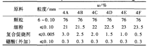 合理的顆粒級配可以提高搗打料的抗熱震性能及抗化學侵蝕性能,也能改善施工后中頻爐工作襯的燒結質量。以文獻[5]為依據,對顆粒級配進行微調整,研究顆粒級配對干式料性能的影響,具體配比見表2;然后,以優選出4配方的粒度級配為基礎,改變復合高溫促燒劑的加入量(等量取代細粉質量),研究促燒劑對于式搗打料性能的影響,其具體配比見表3。