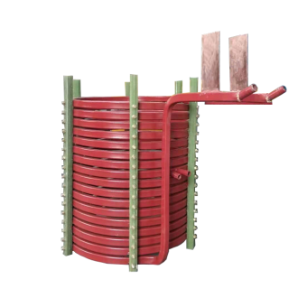 中頻爐感應(yīng)線圈是由螺旋狀矩形紫銅管、固定膠木柱、銅螺釘、連接排以及冷卻水路組成。這其中通過變頻電流產(chǎn)生磁場為螺旋狀矩形紫銅管。因此,中頻爐感應(yīng)線圈的功能就是使得中頻電流通過中頻爐螺旋形感應(yīng)線圈產(chǎn)生磁場,中頻爐感應(yīng)線圈內(nèi)部磁場大小和分布范圍由感應(yīng)線圈設(shè)計(jì)所決定的,也就是說與中頻爐感應(yīng)線圈的矩形銅管尺寸、匝數(shù)、感應(yīng)線圈直徑有很大關(guān)系。